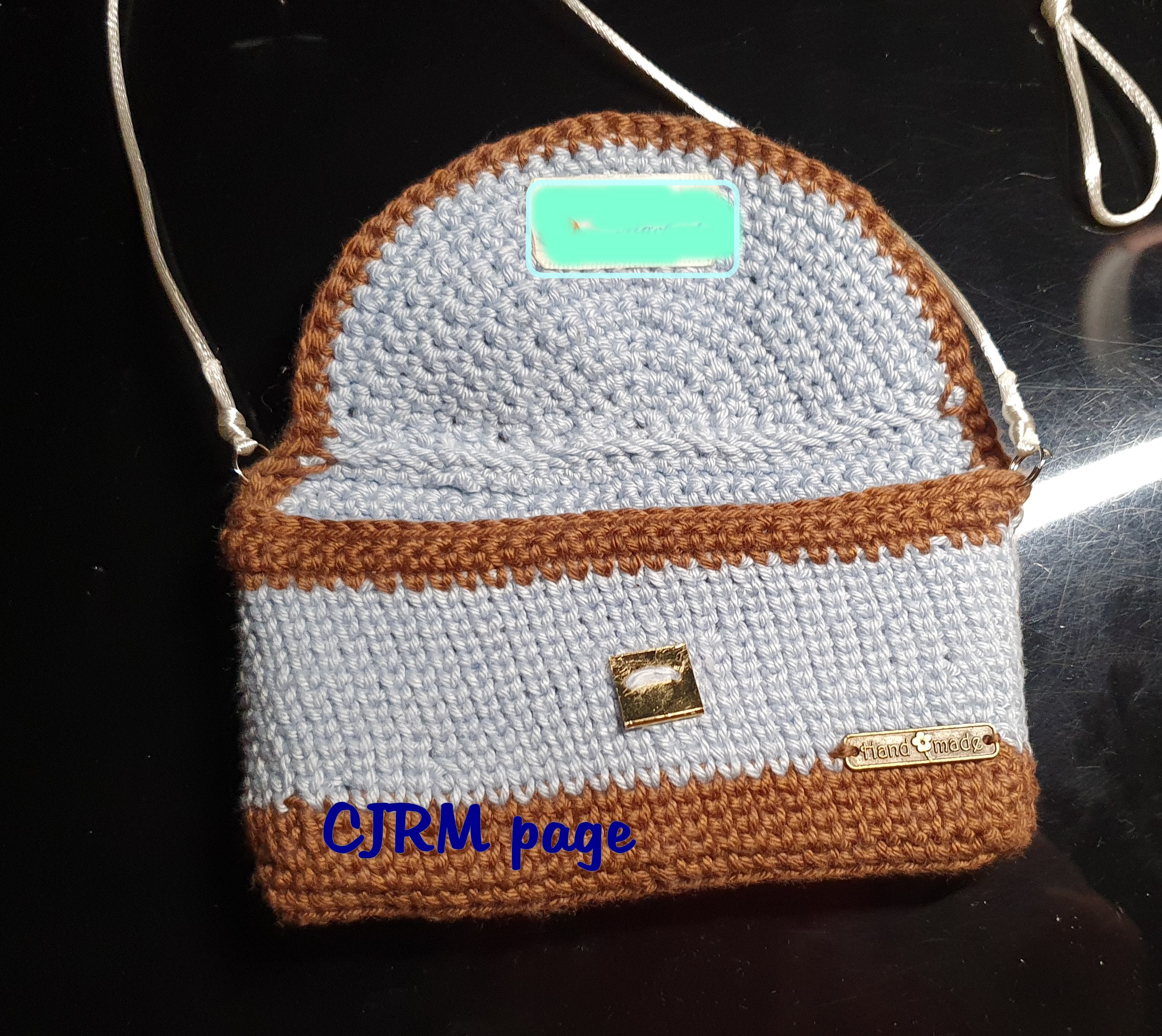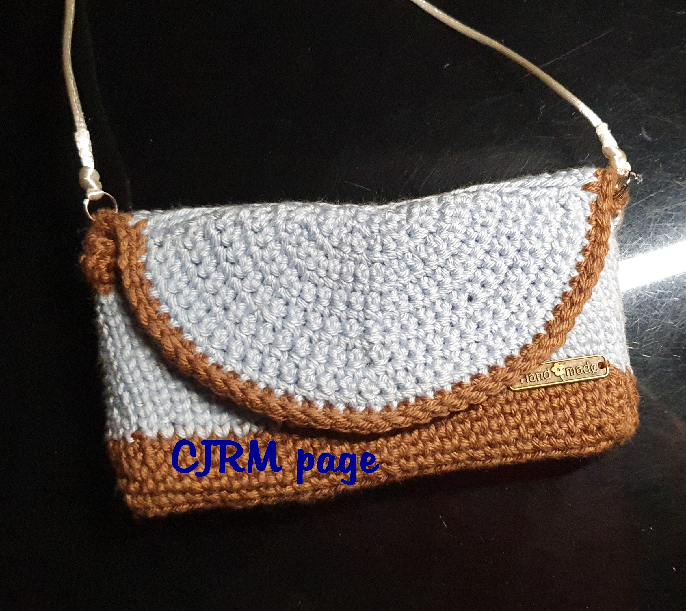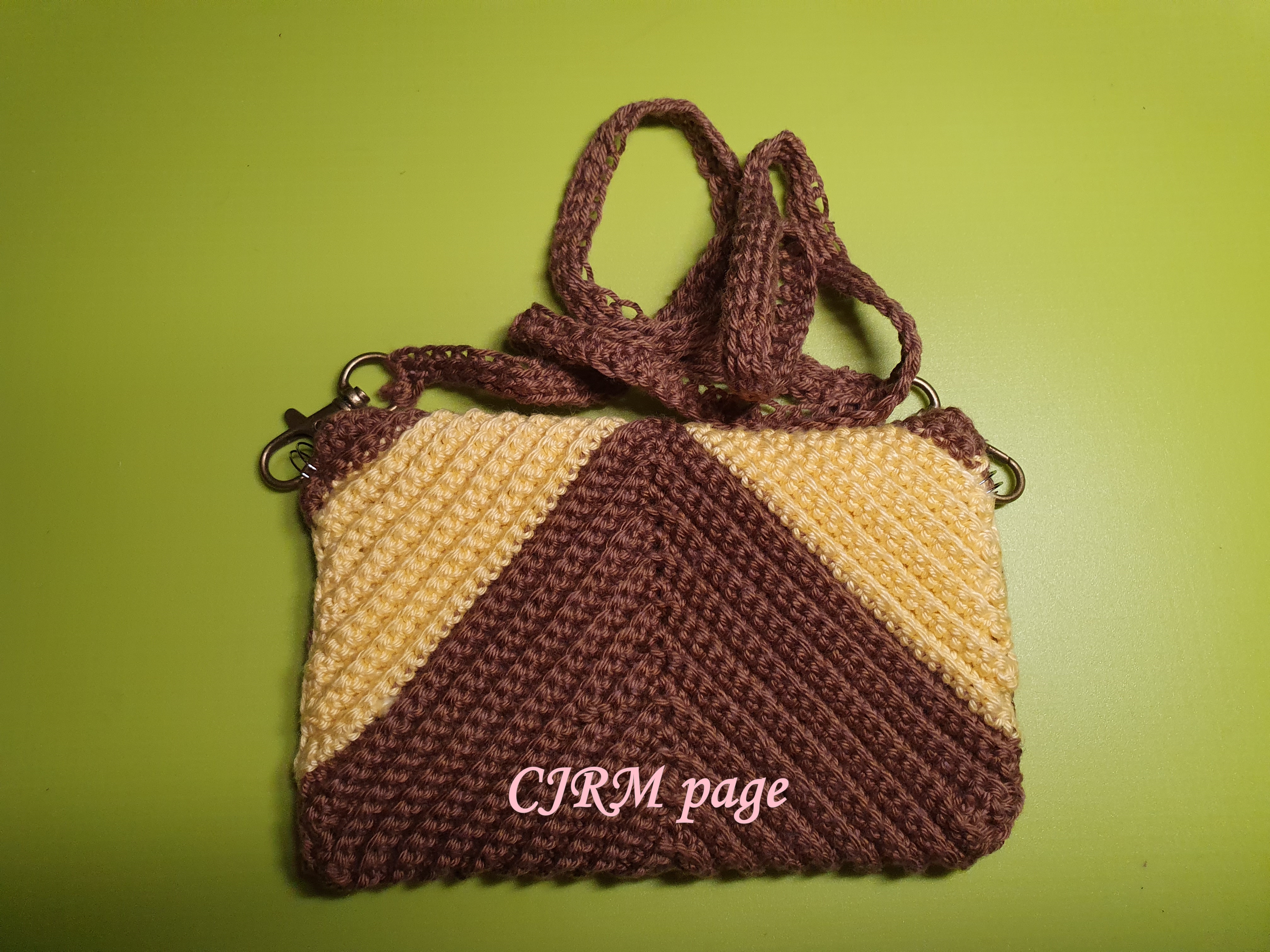 Bolsa ponto em triangulo, que aprendi no youtube em russo, mas que rapidamente já foram traduzidas por outras crocheteiras e existe mesmo em português. Como sempres altero sempre algo, desta vez as cores e uma faixa horizontal.