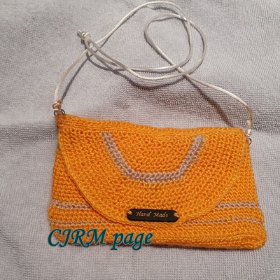 Feita com fio de algodão/acrílico dando-lhe rigidez suficiente mas ao mesmo tempo suavidade no toque de uma bolsa de utilização diária.